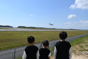 目の前が滑走路で飛行機好きな子たちにはたまらないとおもう。